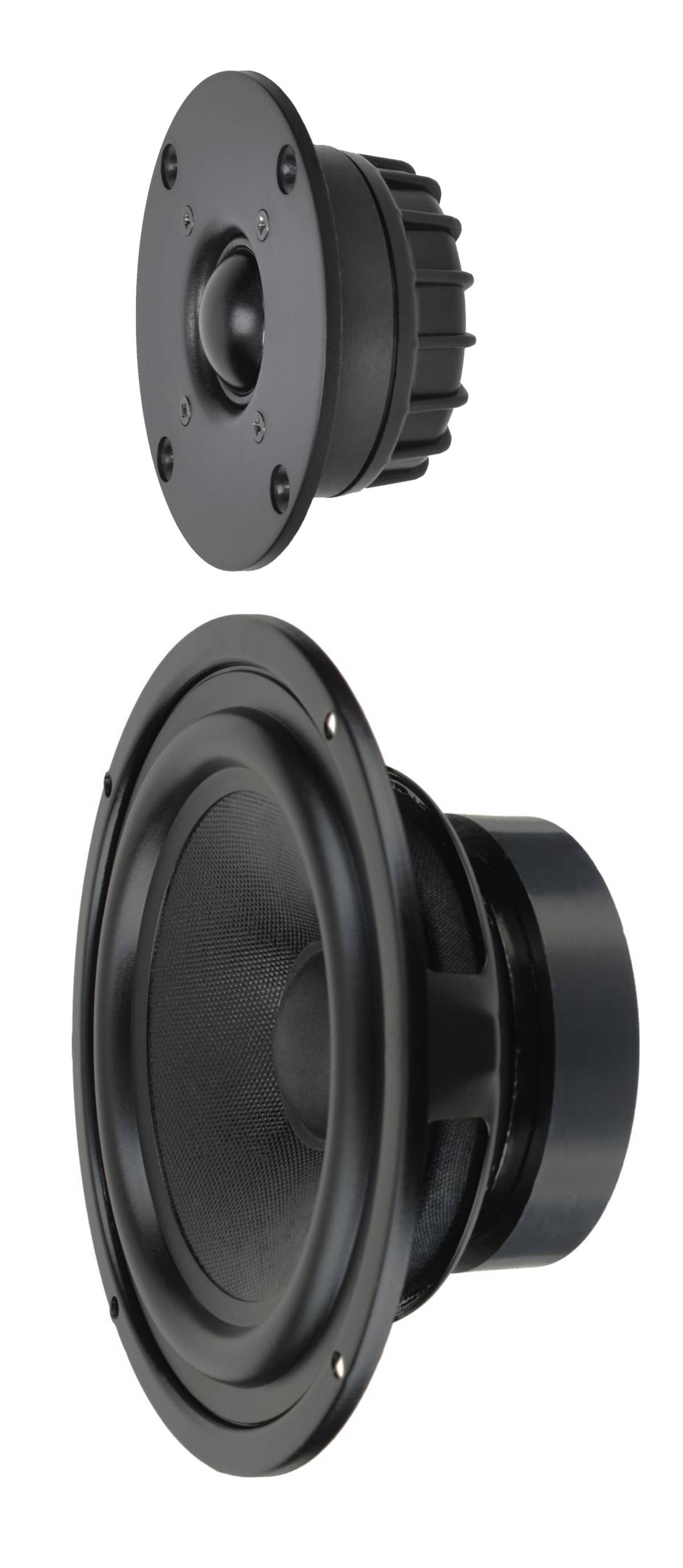 Membrany głośników niskotonowych wykonano z modyfikowanej celulozy. Głośniki wykonane w oparciu o celulozowe membrany cechują się bardzo niskim poziomem rezonansów własnych i łagodnym przebiegiem na końcu pasma głośnika. Modyfikowana celuloza jest obecnie najpopularniejszym materiałem membran głośnikowych - również w konstrukcjach klasy Hi-End. Zastosowanie zawieszeń górnych ze specjalnej mieszanki gumy gwarantuje ich bardzo wysoką trwałość - zdecydowanie wyższą niż w przypadku zawieszeń piankowych. Głośnik wysokotonowy z membraną jedwabną cechuje się niskim poziomem zniekształceń nieliniowych i harmonicznych, a także wyrównaną charakterystyką częstotliwościową.